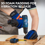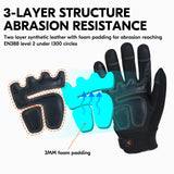 2. PALM - Synthetic leather palm and patches with foam inside reaching EN388 level 2 under 1300 circles, offers long-lasting durability, reinforced fingertip adds extra protection and resistance to wear. 5D foam padding for vibration release