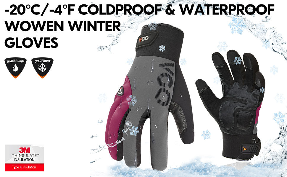 VGO 1Pair -20℃/-4°F Warm Winter Mechanic Gloves, Cold Weather Waterproof Safety Work Gloves,Cold Storage or Freezer Use,w/3M Thinsulate Lining,Touchscreen(SL8777FW-FM)