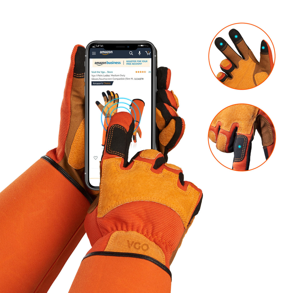 VGO 1Pair Gardening Gloves Unisex,Safety Work Gloves,Long Sleeves Gauntlet,Puncture Proof,Touchscreen(Orange,SL7496)