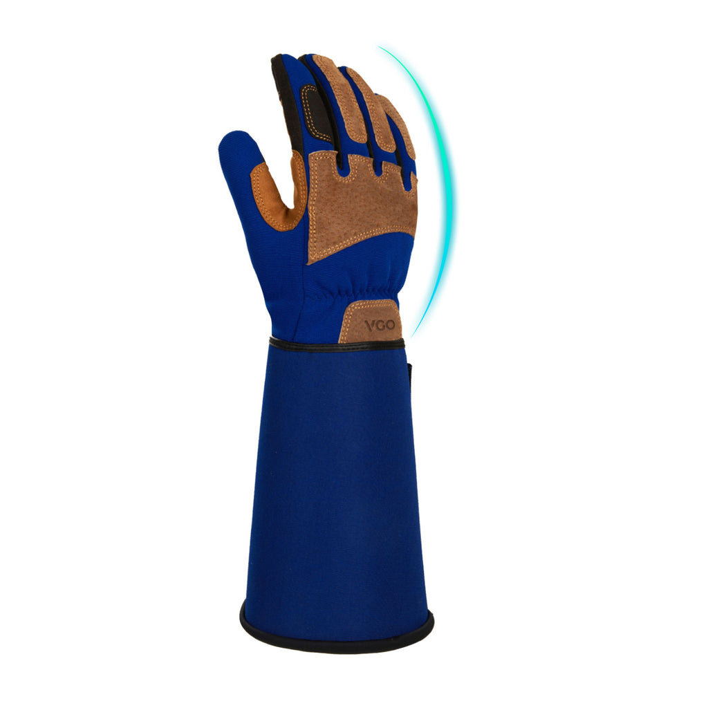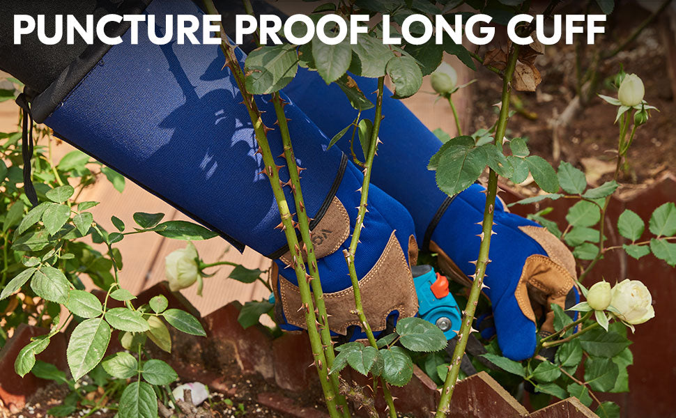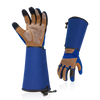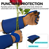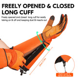 • 3. PUNCTURE-PROOF BACK & EXTRA LONG SLEEVE/ELBOW-LENGTH GAUNTLET - Reinforced pigskin leather patches on knuckle and fingertips ensure wear resistance & puncture proof, to prevent hands from bloody and painful scratches. 19mm freely opened and closed long cuff with magic sticky for easily taking on & off, elastic buckle help tighten the sleeves which keep dust & insects out.