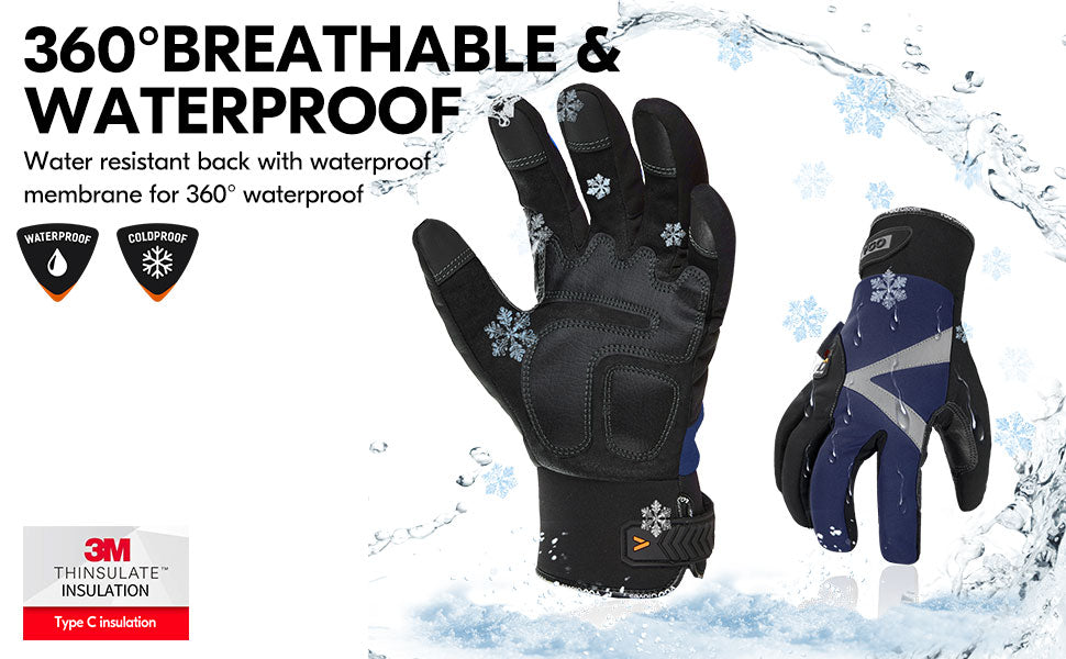 2. COLDPROOF & WATERPROOF AND WINDPROOF-The lining of the gloves are covered with the TPU waterproof membrane, which creates a barrier that blocks cold, moisture, and wind also provides an escape route for perspiration vapor to help your hand stay dry and comfortable on the inside. Gloves with 3M Thinsulate insulation C100(-4℉ or above inside provides superior warmth and comfort in cold conditions. Wind stop and water repellent stretchable back protect your hands from wet conditions.
