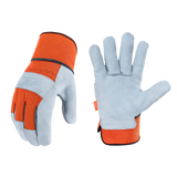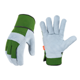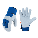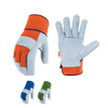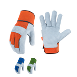 VGO Multiple Colours Cow Split Leather Men's Work Gloves with Safety Cuff (Blue&Orange&Green, CB3501)