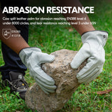 • 2. Carefully selected high-quality split cowhide is exceptionally durable and puncture-resistant, protecting hands from the hard environment in a wide variety of tasks