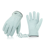 VGO  3Pairs Unlined Cowhide Split Leather Work and Driver Gloves for Heavy Duty, Truck Driving, Warehouse, Gardening, Farm (White,CB9501-W)
