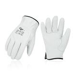 VGO EN388 Level 5 & ANSI A3 Cut Resistant Top Grain Goatskin Work Gloves (White,GA9501HY)