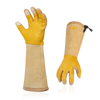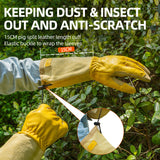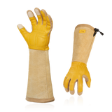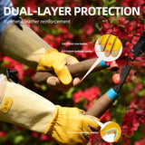 - 3. EXTRA PALM PADDING FOR ANTI-VIBRATION & ELBOW-LENGTH GAUNTLET CUFF: Foam padding inside absorbs and dissipates the impact. They are comfortable and flexible to wear, give you superior skin protection during any type of works£»Extra-long split pig leather cuff design with high tear-resistance and puncture resistance level to protect forearms from scratches, poke or harm, long pruning gloves allowing you free from your roses painlessly.